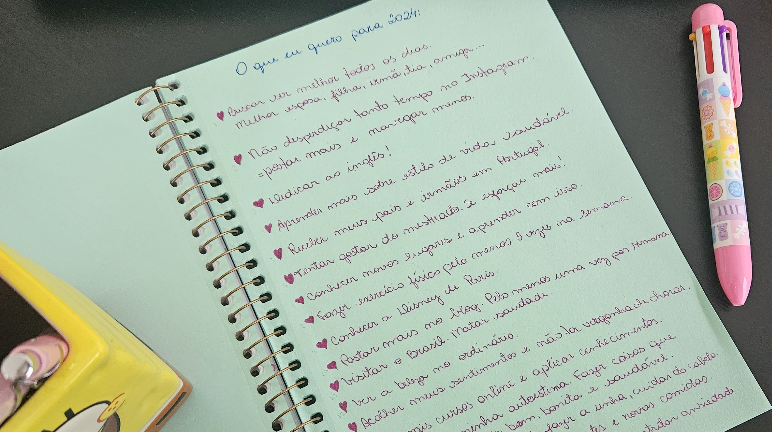 Olha, eu juro que fiz esta lista nos primeiros dias de janeiro. Escrevi 17 itens no meu caderninho de folhas coloridas que comprei ano passado para usar no mestrado e acabei usando somente três páginas em seis meses. É que escrever no digital é mais fácil para pesquisar depois.